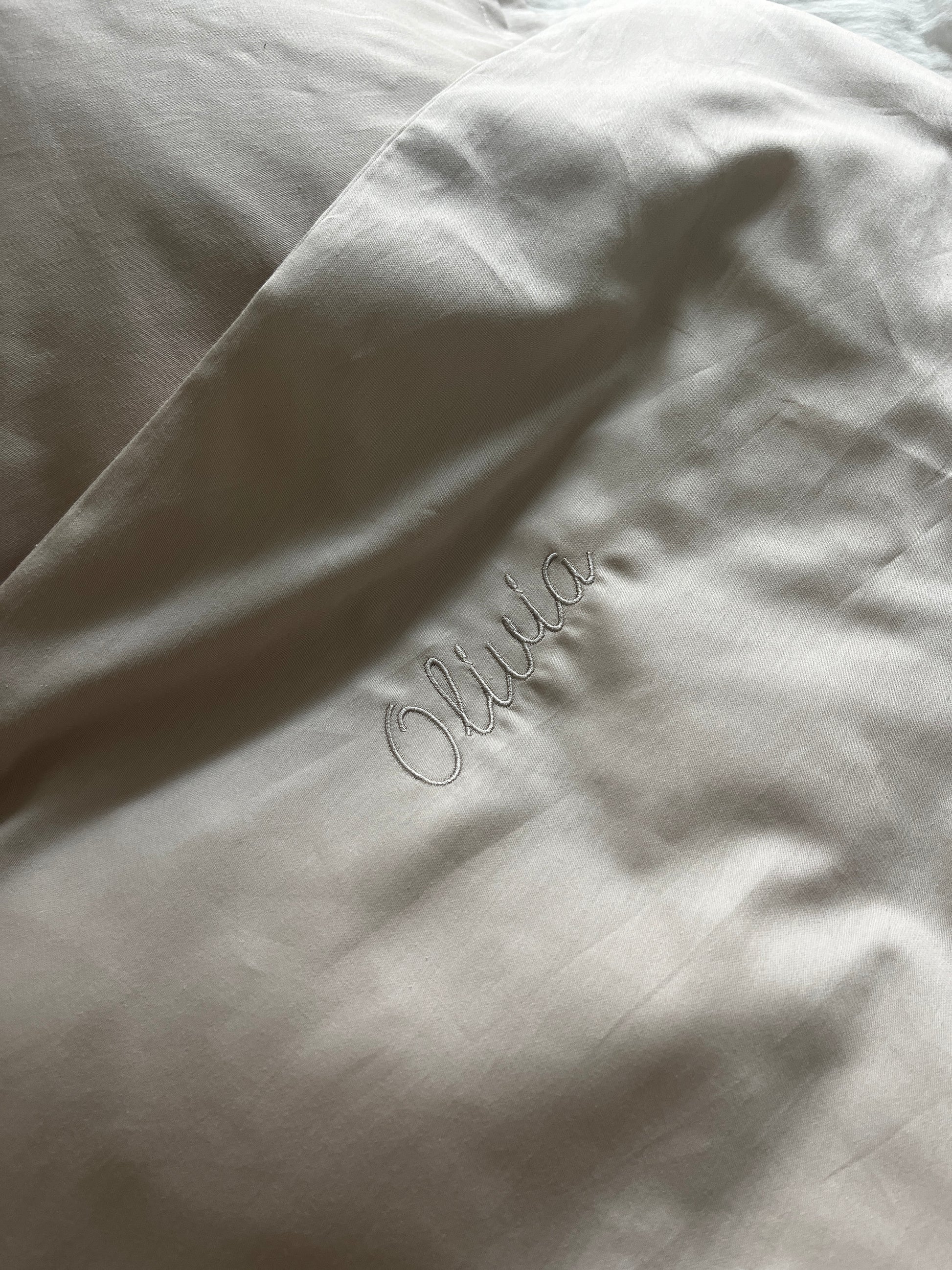 Vi tilbyder navne- og initialbrodering på alle vores sengesæt.